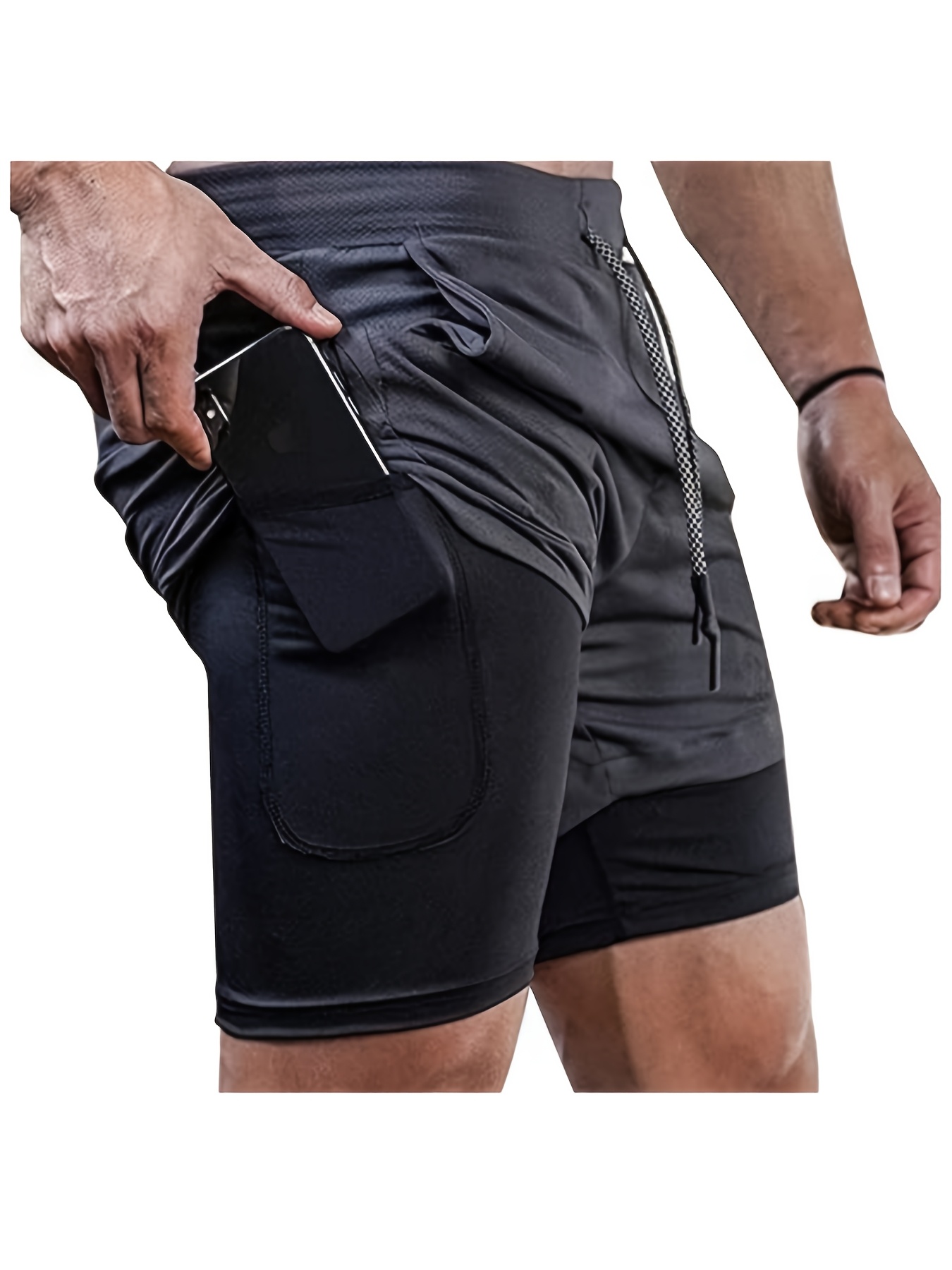 Men’s 2-in-1 Double Layer Fitness Shorts – Quick-Dry Casual Sports Shorts with Secure Phone Pocket