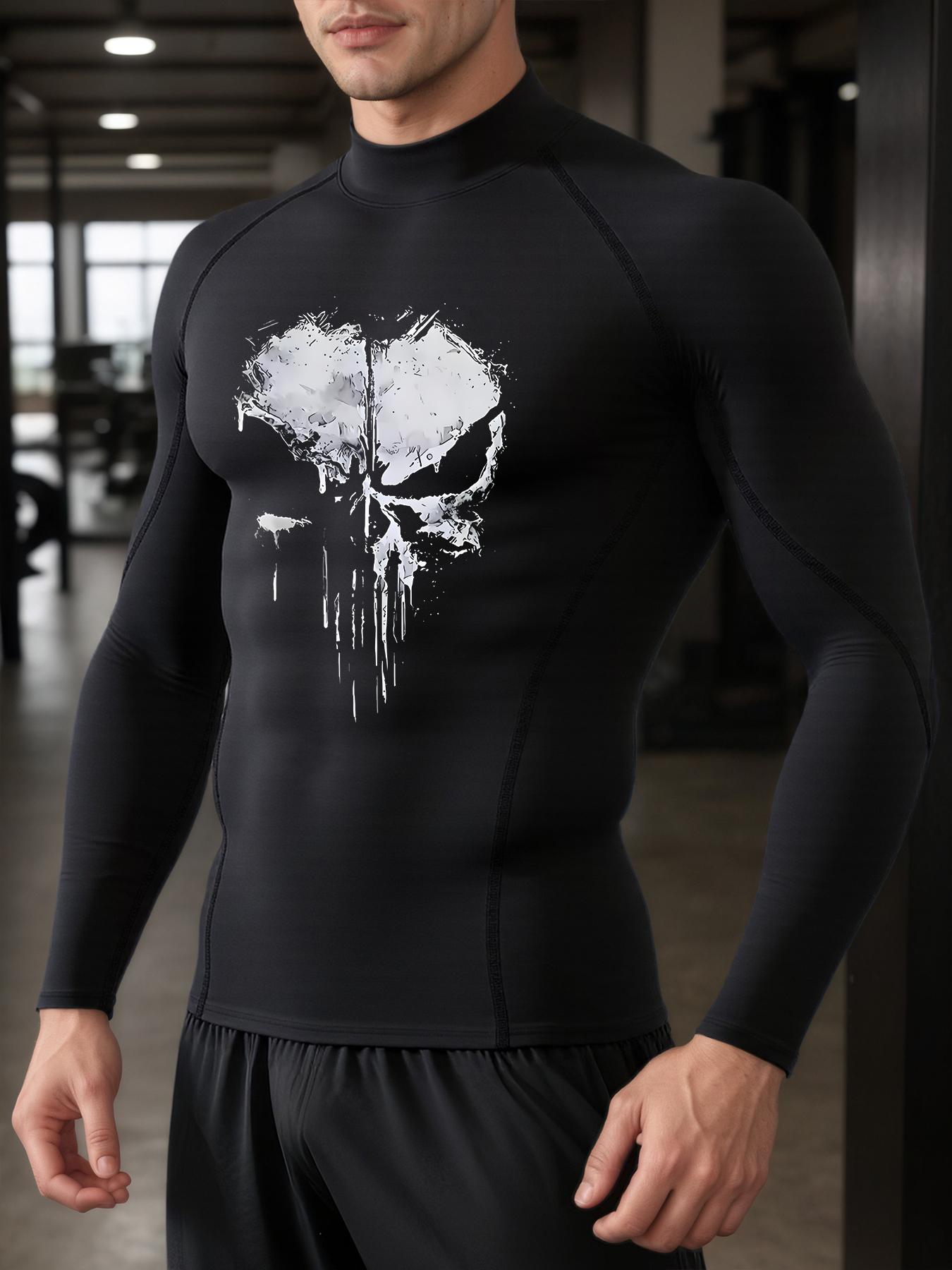 Marvel Punisher High-Neck Quick-Dry Long Sleeve Compression Shirt